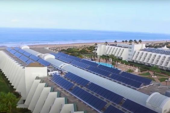 Este hotel incorporó en 2020 un sistema de 300 paneles híbridos, combinado con caldera de gas como sistema auxiliar, para dar servicio a ACS, piscinas exteriores y electricidad. La instalación logra una producción térmica y eléctrica muy elevada, alcanzando hasta un 75% de ahorro energético y una reducción del 78% de emisiones de CO₂,